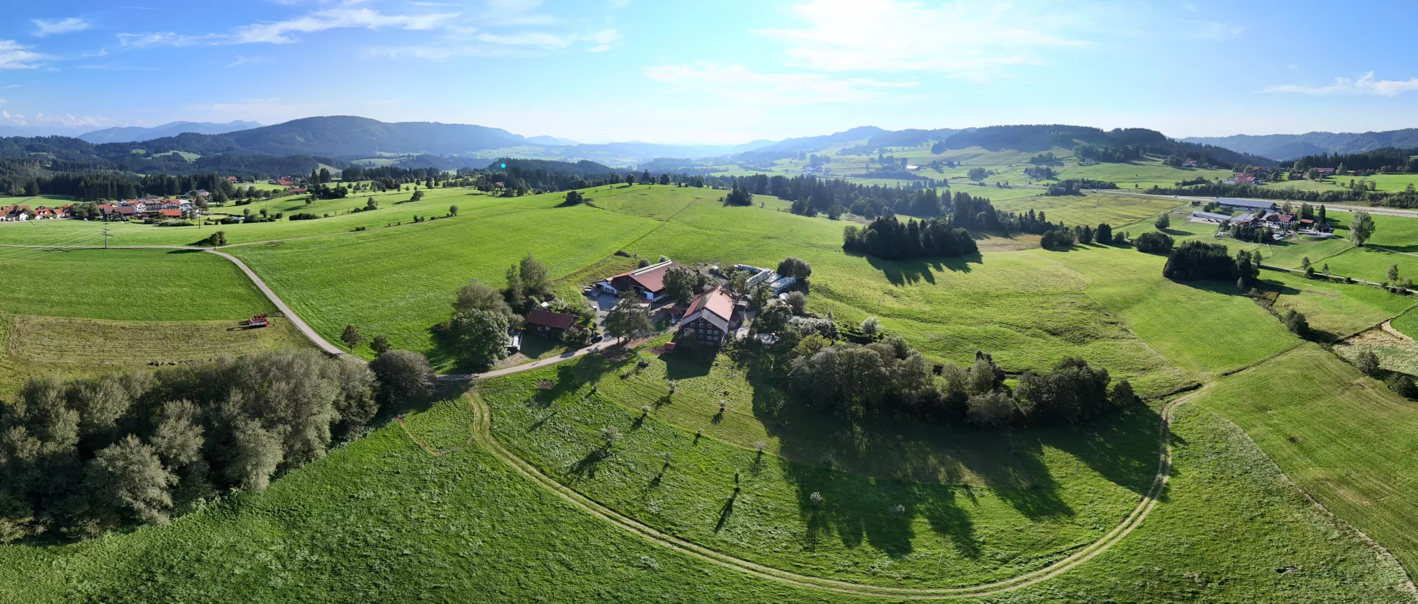 Mitten in der Natur auf 950m findest du unseren Bioland-Betrieb im Allgäu. Unsere Besonderheit sind die selten gewordenen Rassen. Dazu gehören unsere Original Braunvieh Kühe mit Horn, die kuscheligen braunen Bergschafe und das Augsburger Huhn mit seinem einzigartigem Kronenkamm.